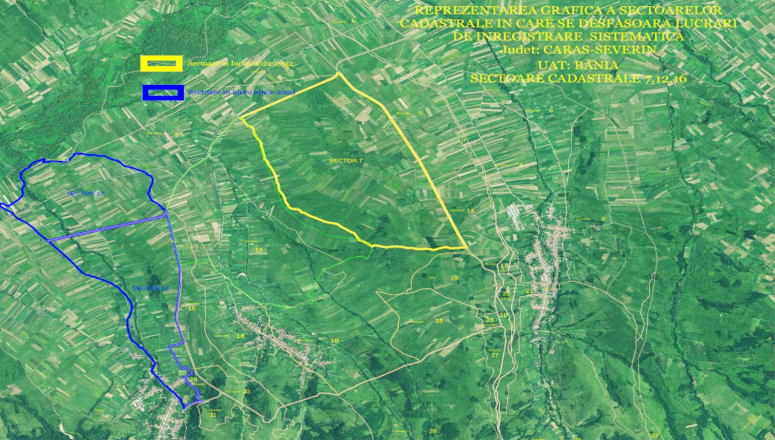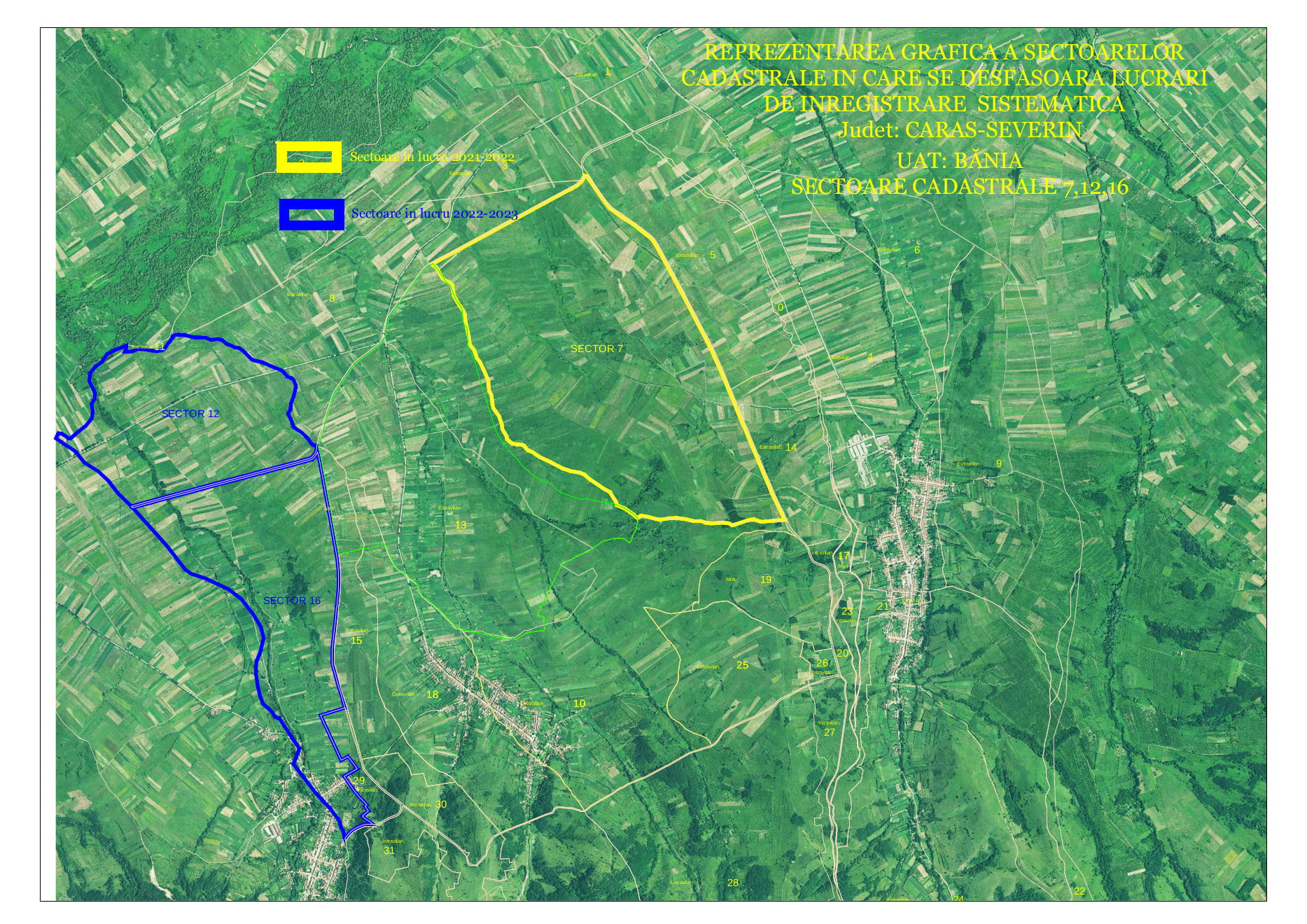 ANUNT PRIVIND ÎNCEPEREA SERVICIILOR DE ÎNREGISTRARE SISTEMATICĂ ÎN SISTEMUL INTEGRAT DE CADASTRU ȘI CARTE FUNCIARĂ A IMOBILELOR SITUATE IN UAT BANIA JUDETUL CARAS-SEVERIN, SECTORUL: 7, 12,16