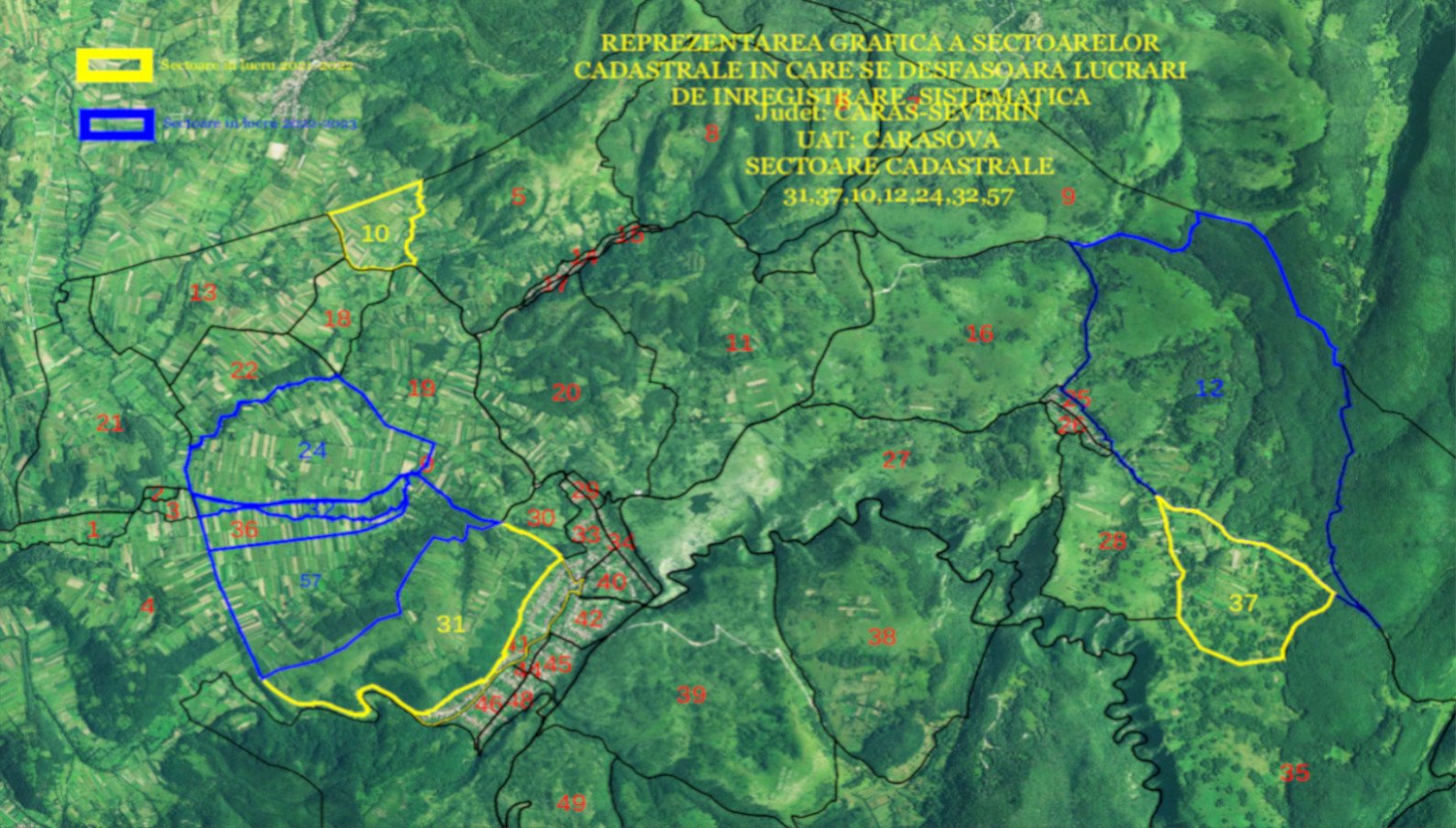 ANUNT PRIVIND ÎNCEPEREA SERVICIILOR DE ÎNREGISTRARE SISTEMATICĂ ÎN SISTEMUL INTEGRAT DE CADASTRU ȘI CARTE FUNCIARĂ A IMOBILELOR SITUATE IN UAT CARASOVA, JUDETUL CARAS-SEVERIN, SECTOARELE: 31,37,10,12,24,32,57